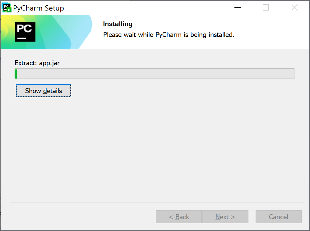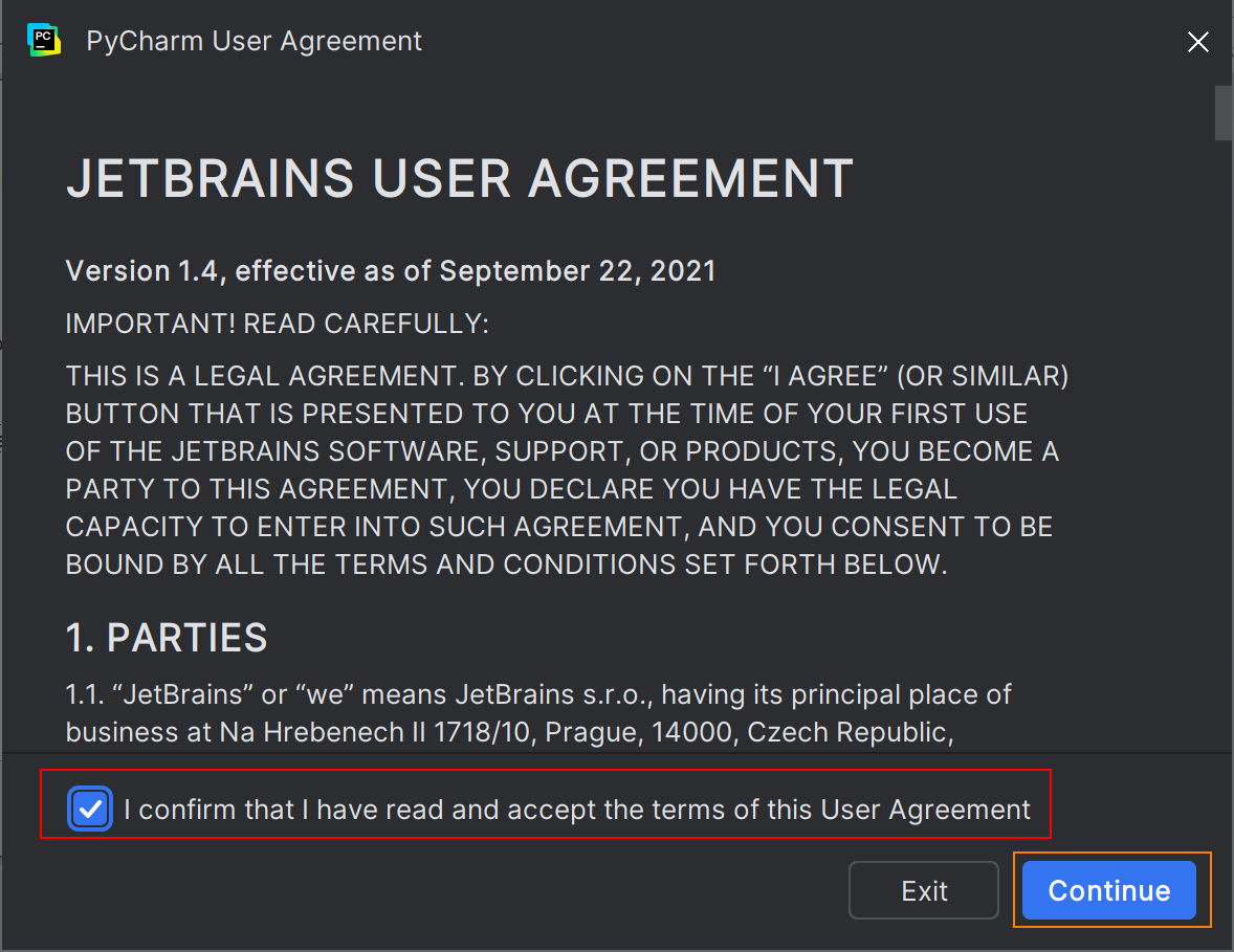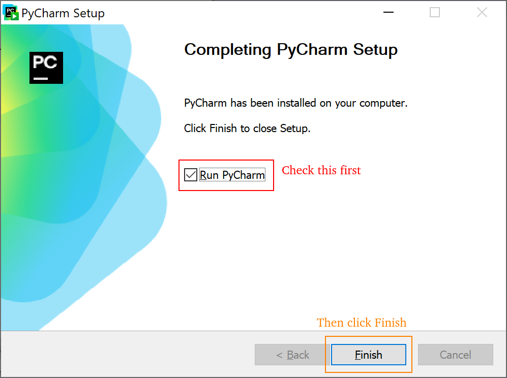 Run PyCharmand then clickFinish. The newly installed PyCharm will open.